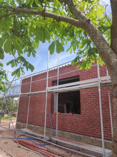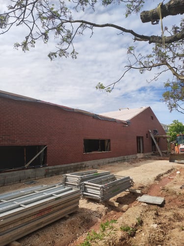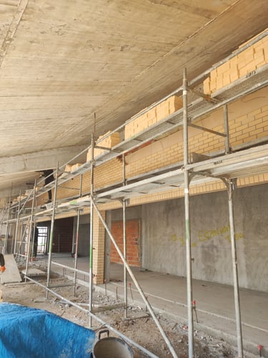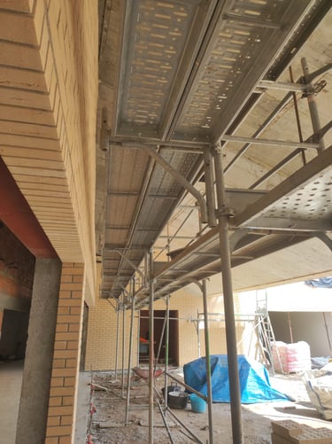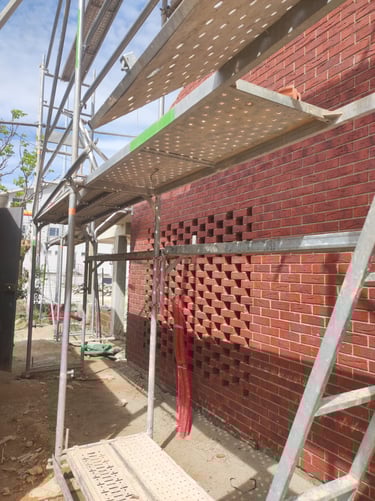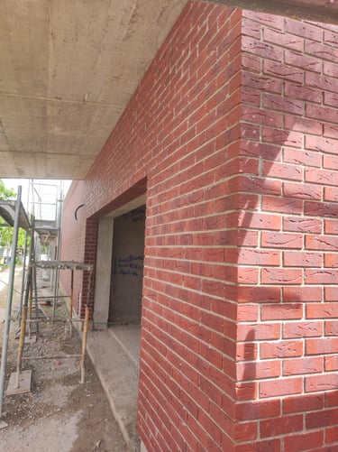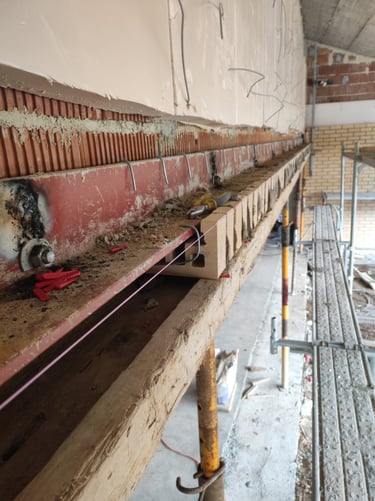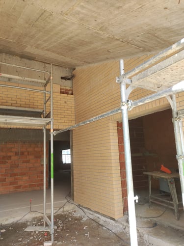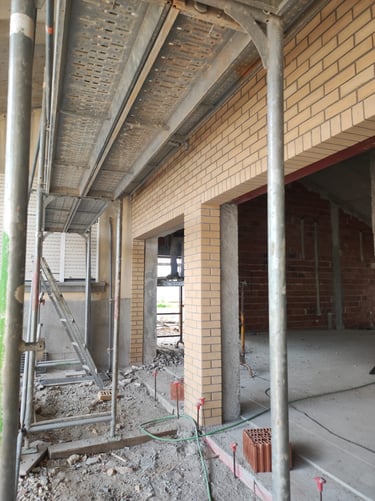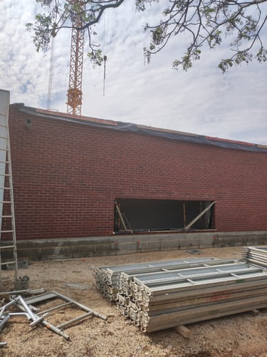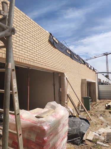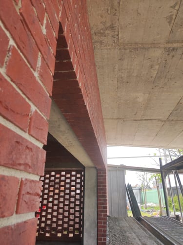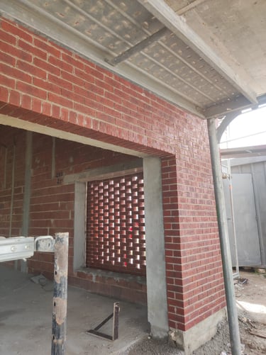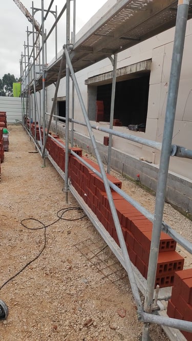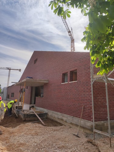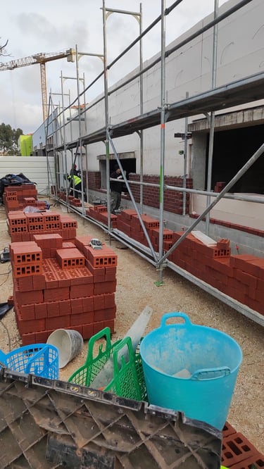 Obra em Aveiro, numa escola básica, onde foram executadas padieiras ao cutelo.O tijolo é lavrado, apresenta duas cores e inclui elementos como hit and miss.