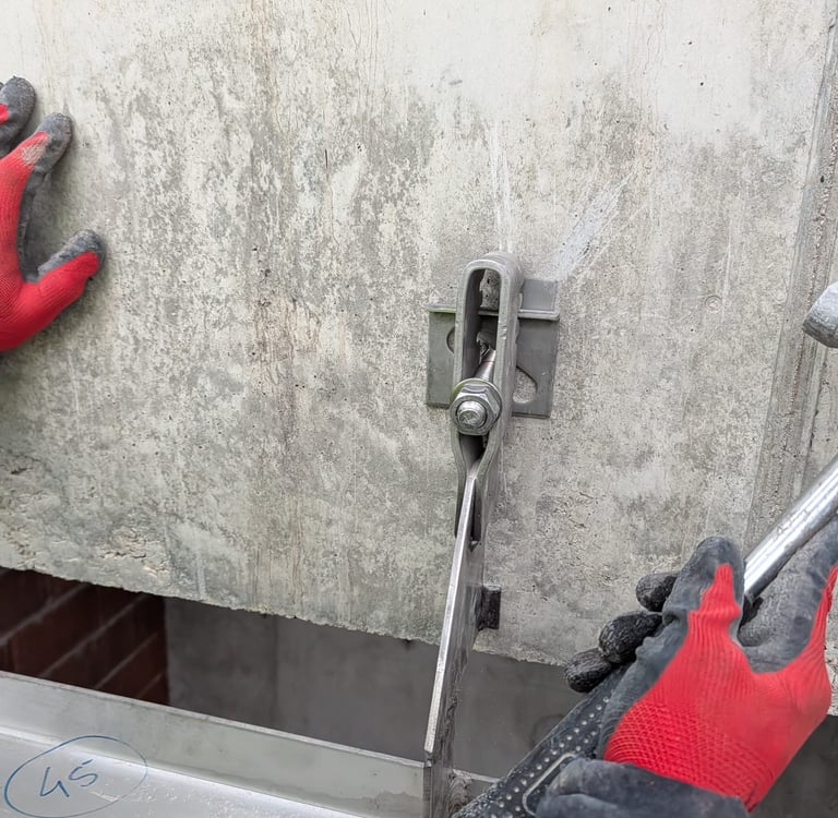 Este elemento permite ajustar com precisão a posição da cantoneira flutuante, assegurando que o apoio da fiada de tijolo permanece na cota definida mesmo após a aplicação da carga.