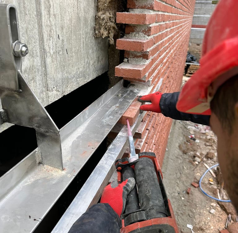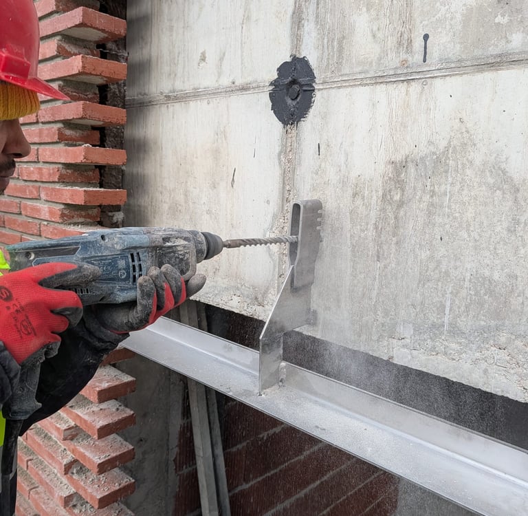 Este tutorial apresenta o processo de execução de um sistema de aplicação de tijolo ao travesso suportado por cantoneiras flutuantes em aço inox, desenvolvido para garantir estabilidade mecânica do revestimento e controlo preciso do alinhamento da alvenaria.