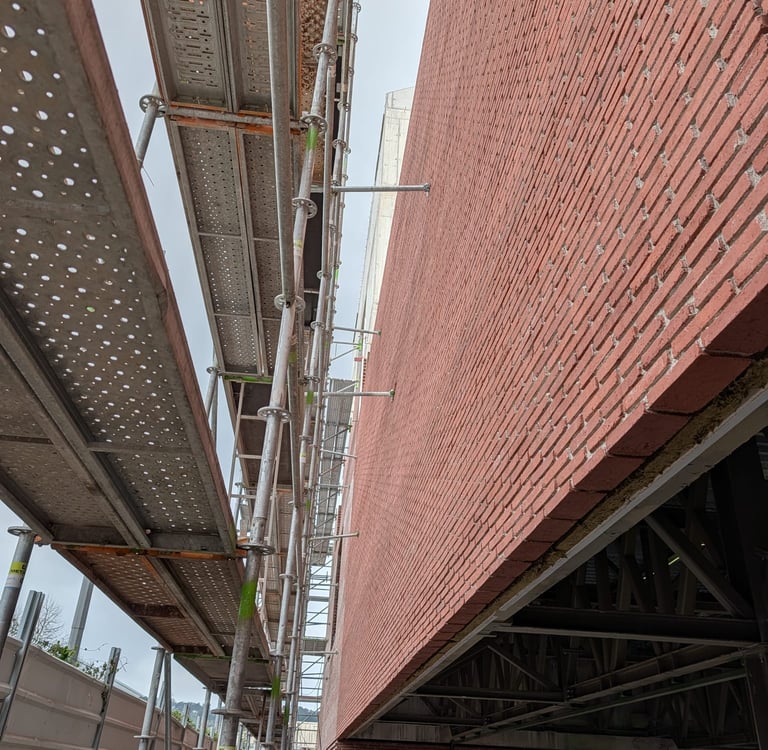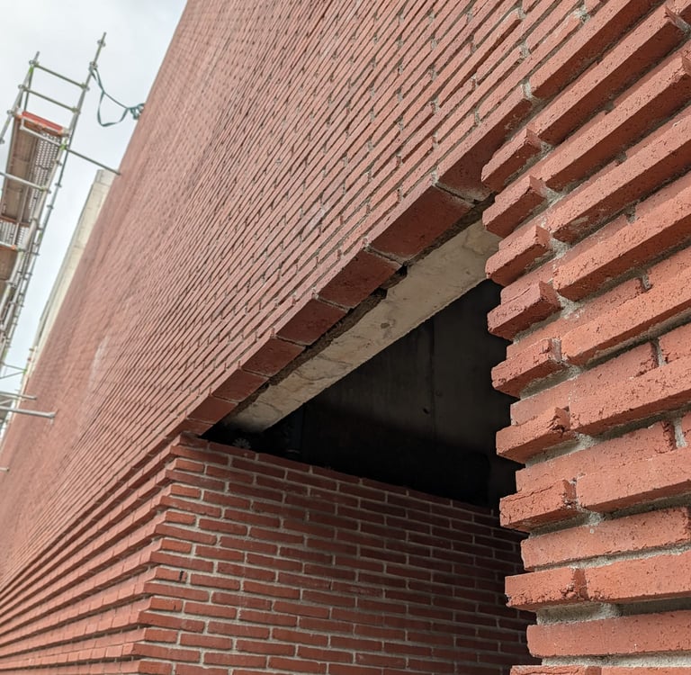 A execução de revestimentos em tijolo à vista exige soluções construtivas que garantam estabilidade, durabilidade e controlo rigoroso do alinhamento da alvenaria.